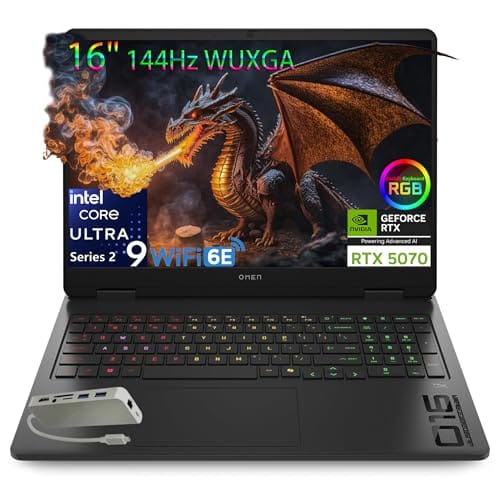 HP OMEN 16″ 144Hz WUXGA Slim Gaming Laptop, Intel 16-Core Ultra 9 285H, GeForce RTX 5070 Computer, 32GB DDR5 RAM, 1TB PCIe SSD, AI Boost, WiFi 6E, RGB Backlit KB, FHD Webcam, Windows 11, Type-C Hub